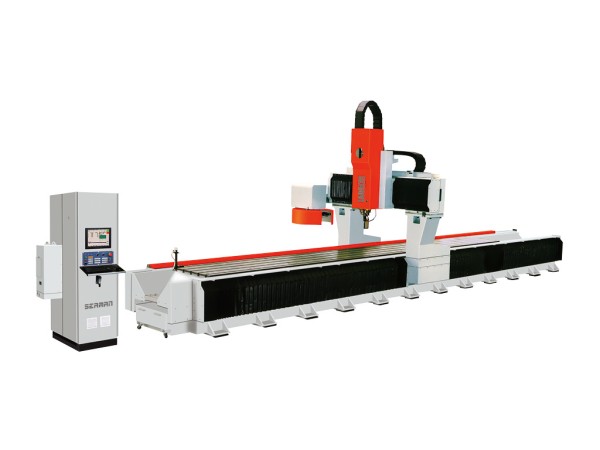LGZS6512型四軸數(shù)控龍門加工中心是我公司為適應(yīng)軌道交通鋁型材和各種工業(yè)鋁材的加工,專門開發(fā)設(shè)計(jì)的一款高檔機(jī)、電、氣一體化設(shè)備。該型加工中心剛性足、速度快,主軸具有轉(zhuǎn)速高和低速較大扭矩的特點(diǎn),具有很高的加工效率,并且根據(jù)軌道交通鋁型材的特點(diǎn)做了適應(yīng)性的特殊設(shè)計(jì),使得該型設(shè)備可以較好的滿足軌道交通鋁型材各種長度工件的高效加工。在軌道交通行業(yè),該類型設(shè)備現(xiàn)在已經(jīng)拓展成為系列產(chǎn)品,該型號(hào)設(shè)備是主要產(chǎn)品之一。